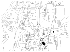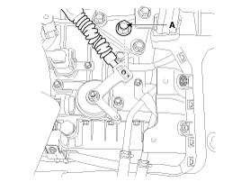 Надавите на трос переключения по стрелке «F», чтобы устранить свободный ход, а затем затяните гайку (А) с указанным крутящим моментом.