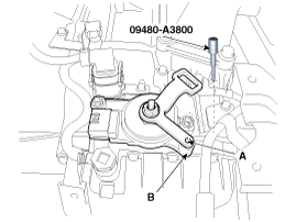 Затяните гайку (А) и болты (В) с указанным моментом.