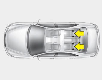 Предусмотрены анкеры LATCH в левой и правой внешней задней части места для сидения. Их расположение показано на иллюстрации. Есть анкеры LATCH не предусмотрены для центральное заднее сиденье.