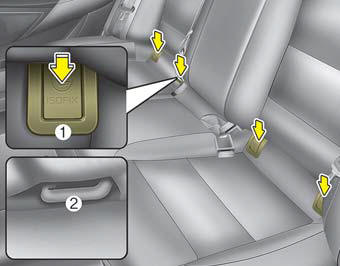 Якоря LATCH расположены между спинкой и сиденьем подушка заднего сиденья слева и справа внешние места для сидения.