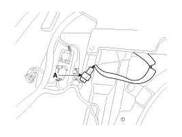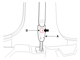 Преднатяжитель анкера ремня безопасности (А) можно снять, нажав на стопорный штифт (В) в направлении стрелки.