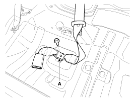 Ослабив крепежный болт, снимите нижнее крепление заднего центрального ремня безопасности (А).