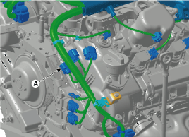 Отсоедините разъем датчика детонации (А).