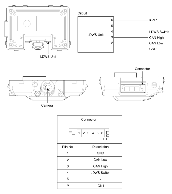 Kia Cadenza: Система предупреждения о выходе из полосы движения (LDWS) / Система предупреждения о выходе из полосы движения (LDWS) Компоненты блока и расположение компонентов