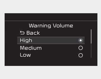 Громкость предупреждения > Высокий/Средний/Низкий».