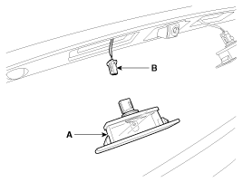 Отсоедините разъем (B) после снятия блока лампы номерного знака (A).