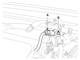 Выверните установочный болт (В) и снимите датчик вертикально с расширительного бачка.