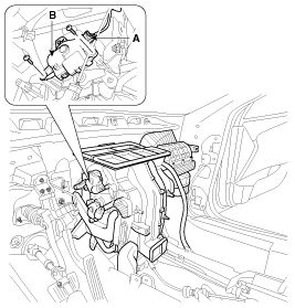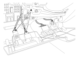 Отсоедините диагностический разъем (А) и снимите нижнюю крышку подушки безопасности.