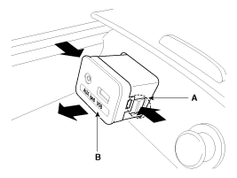 Снимите мультимедийный разъем (B) с верхней крышки консоли, освободив фиксированные крючки (A).