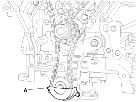 Снимите болт (А) и затем отделите цепь со звездочкой от масляного насоса.