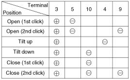 Заземлите клеммы, как показано в таблице ниже, и убедитесь, что двигатель жалюзи работает.