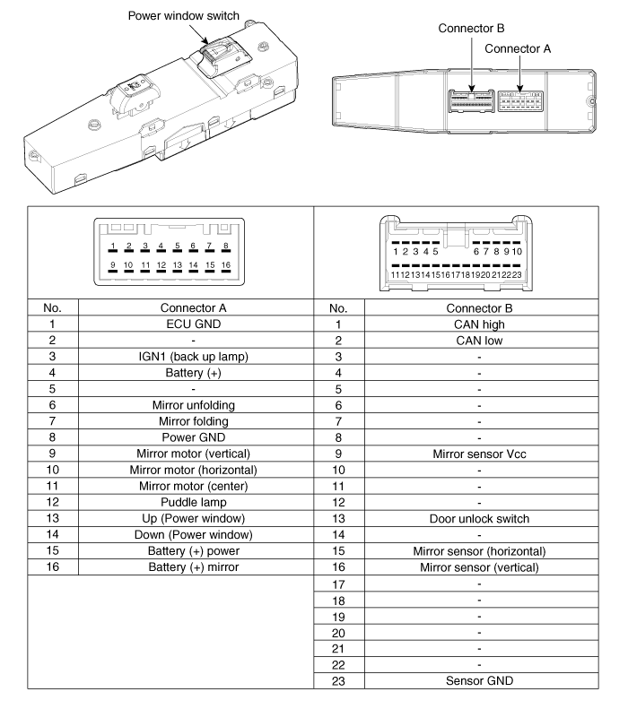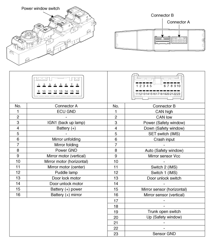 | Переключатель стеклоподъемника водителя (1) |