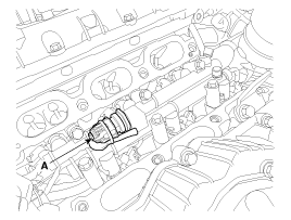 Отсоедините разъем датчика давления в рампе (А) и снимите датчик с напорной трубы.