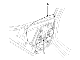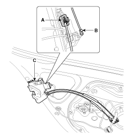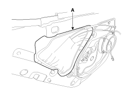 Снимите внутренний уплотнитель ремня безопасности задней двери (А).
