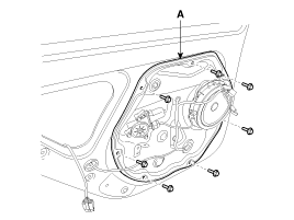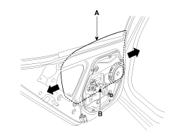 Осторожно перемещайте стекло (A), пока не станут видны болты крепления стекла, затем ослабьте их.