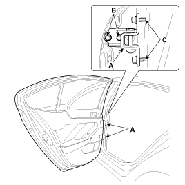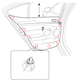 Отсоедините зажимы, затем снимите уплотнитель задней двери (A).