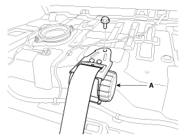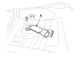 Ослабив крепежный болт, снимите натяжитель заднего центрального ремня безопасности (А).