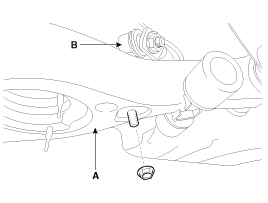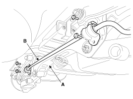 Ослабьте крепежный болт и снимите стабилизатор поперечной устойчивости (В) с подрамником (А).