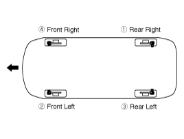 Повторяйте процедуру для колеса в показанной ниже последовательности до тех пор, пока в жидкости не перестанут появляться пузырьки воздуха.