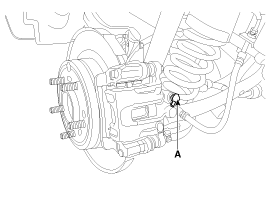Ослабьте винт для прокачки правого заднего тормоза (А), чтобы воздух вышел из системы. Затем надежно затяните прокачной винт.