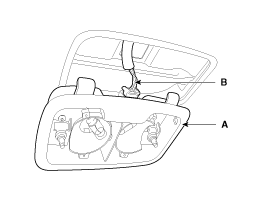 Снимите косметический светильник (А), нажав на зажим (В) плоской отверткой.