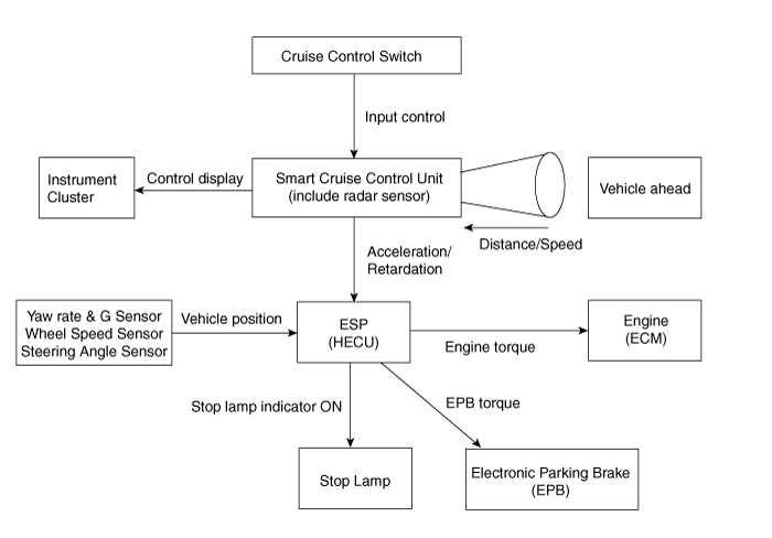 Введите заданную скорость и расстояние в ЭБУ SCC.