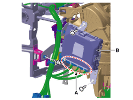 Отсоедините разъем (А) после ослабления крепежных винтов и болта. Затем снимите блок SMK (B).