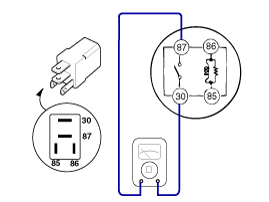 Подайте 12 В на клемму 85 и заземлите клемму 86, а затем проверьте целостность цепи между клеммами (30 и 87).