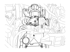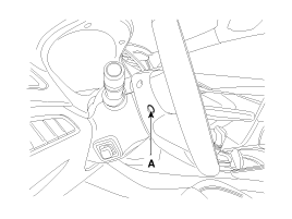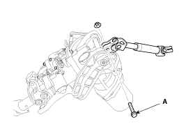Ослабьте болт (А) и затем отсоедините узел универсального шарнира от узла рулевой колонки.