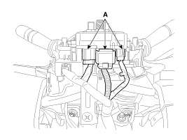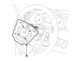 Нажмите на штифт (А) и отсоедините модуль подушки безопасности от рулевого колеса.