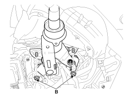 Снимите рулевую колонку и блок EPS, ослабив крепежный болт (А) и гайки (В).