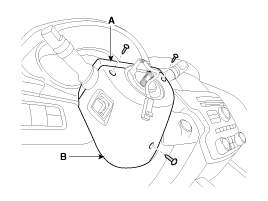 Ослабьте винт и снимите верхний (А) и нижний кожух (В) рулевой колонки.