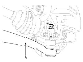 Снимите шпильку и корончатую гайку, а затем отсоедините конец рулевой тяги (А) от переднего поворотного кулака.