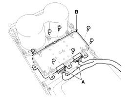 Снимите переключатель дистанционного управления задним сиденьем (В), предварительно ослабив крепежные винты и отсоединив разъем (А).