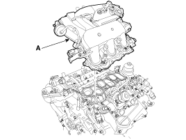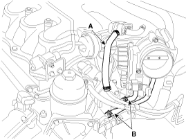 Отсоедините шланг PCSV (A) и водяные шланги корпуса дроссельной заслонки (B).
