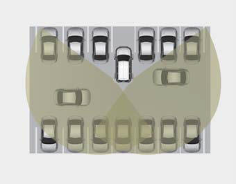 использует задние угловые радарные датчики для