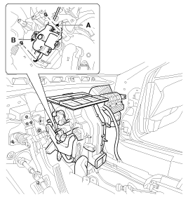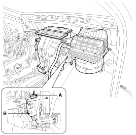Отсоедините штифт (А), затем снимите перчаточный ящик (В).