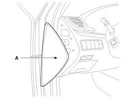 Отсоедините разъем (А) и снимите нижнюю крышку подушки безопасности.