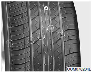Если шина изнашивается равномерно, износ протектора Индикатор (A) будет отображаться сплошным цветом. полоса поперек протектора. Это показывает меньше 1/16 дюйма (1,6 мм) протектора, оставшегося на шине. Заменить устают, когда это происходит.