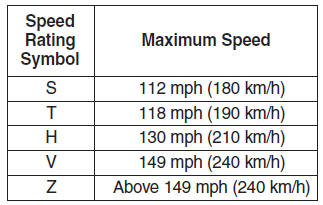 В приведенной ниже таблице перечислены многие из различных рейтинги скорости в настоящее время используется для легковых автомобилей. рейтинг скорости является частью размера шины обозначение на боковой стенке шина. Этот символ соответствует тому шина разработана максимально безопасной эксплуатации скорость.