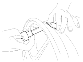 Выпустите воздух во входное отверстие для воздуха в шине (A).