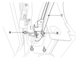 Ослабьте крепежный болт и снимите продольный рычаг (С) с кузова.