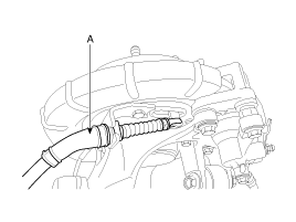 Отсоедините трос стояночного тормоза (А) от заднего тормоза в сборе.
