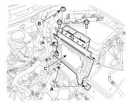 Снимите крепежные болты (А) и гайку (В), затем снимите TCM (С).