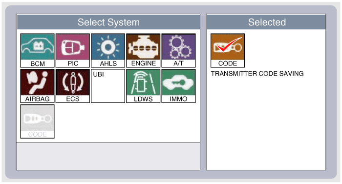 Выберите модель автомобиля, а затем выполните «СОХРАНЕНИЕ КОДА».