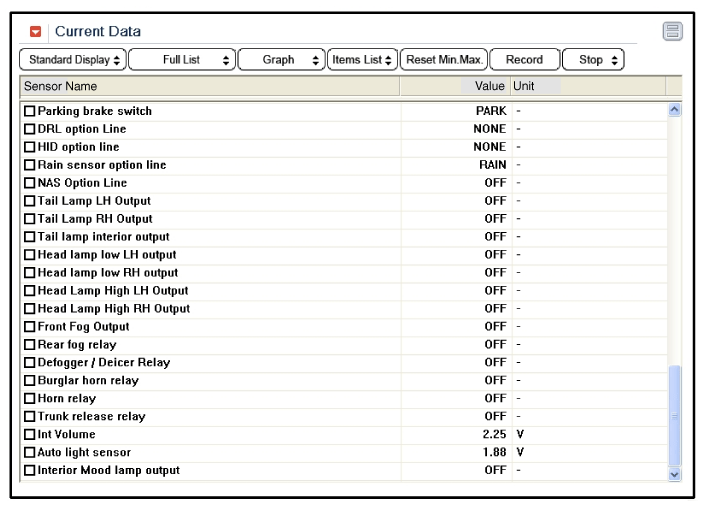 Входы выключателя лампы можно проверить с помощью GDS.