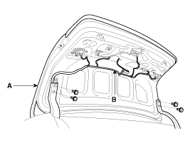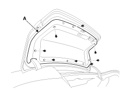 Ослабьте гайки крепления задней панели крышки багажника (А).