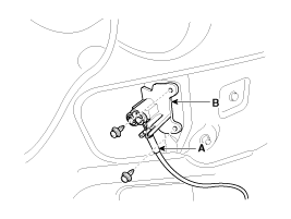 Ослабив болт крепления шарнира крышки багажника (А), отрегулируйте крышку багажника, перемещая ее вверх или вниз, вправо или влево.