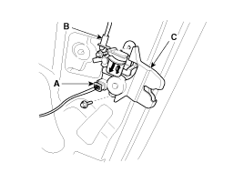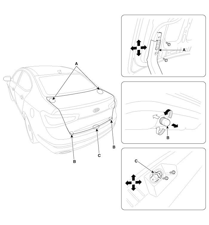 После ослабления болтов крепления фиксатора крышки багажника (C),