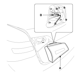 С помощью отвертки или съемника снимите заднюю панель крышки багажника (А).